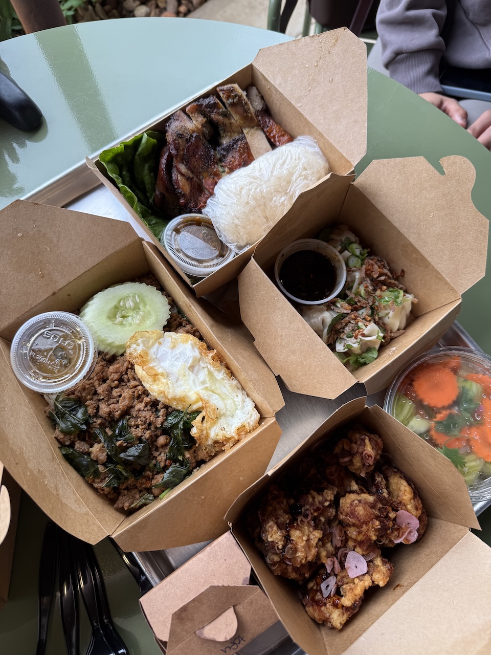 Located in Sunset Valley—essentially South Austin—you’ll find Leona Botanical Café, a concept from the owners of DeeDee and Veracruz. They serve authentic Thai dishes in a lush, botanical setting, along with food from Veracruz All Natural. The drinks are handled separately in the café area, so you’ll order food directly from the restaurant stalls and then order your drinks from the café.